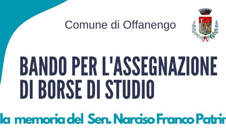 L’Amministrazione Comunale di Offanengo ha approvato anche quest'anno il bando per l’assegnazione delle borse di studio comunali al merito scolastico alla memoria del Sen. Narciso Franco Patrini.