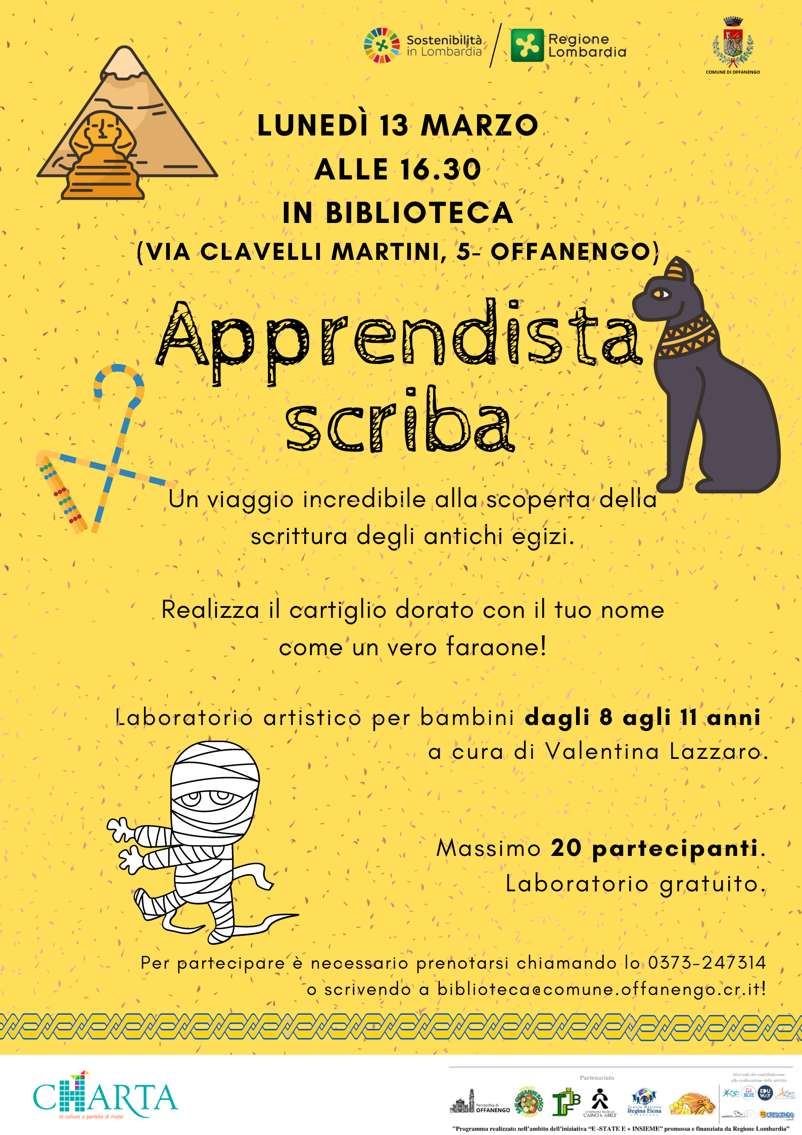 Massimo 20 partecipanti. Laboratorio gratuito.