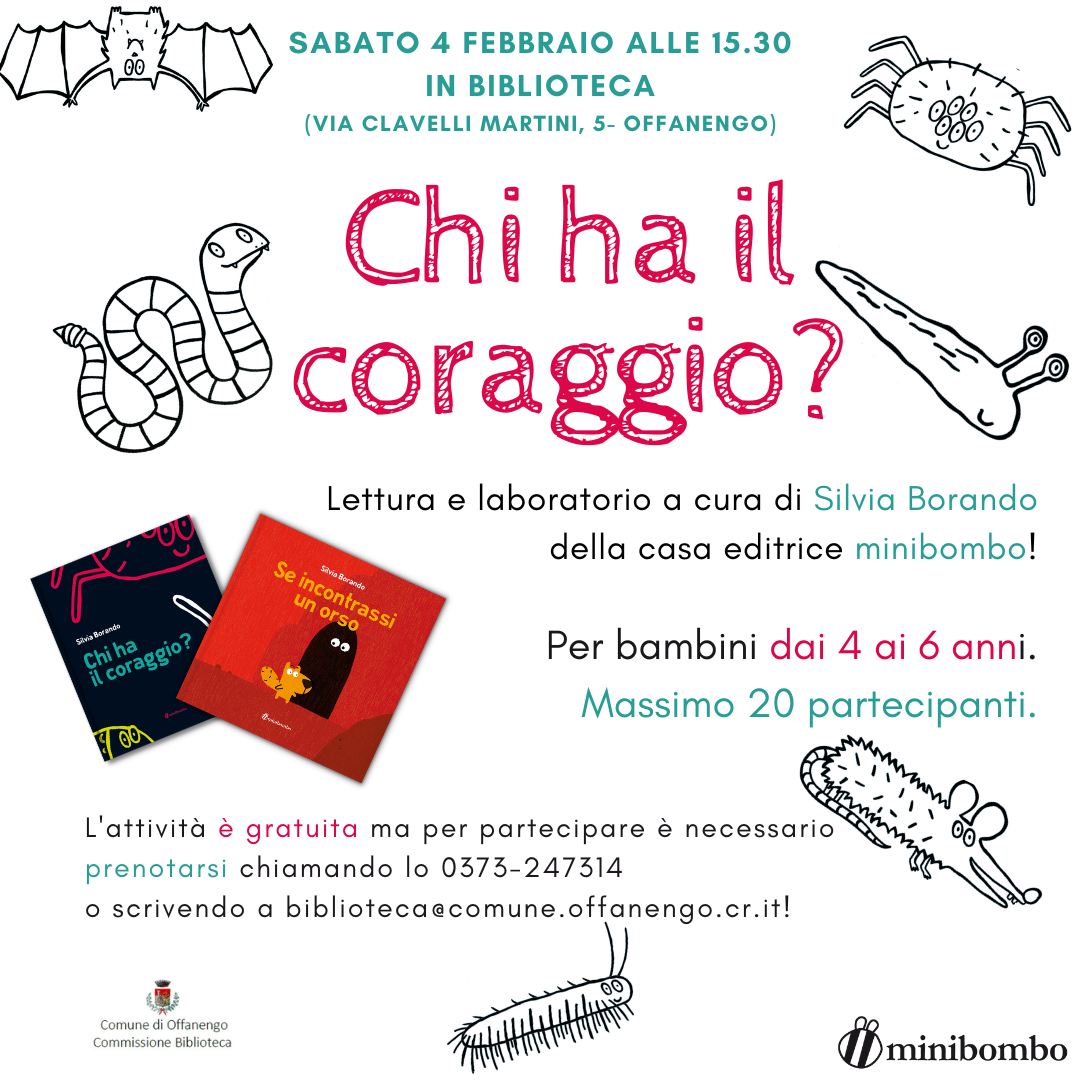 L'attività è gratuita ma per partecipare è necessario prenotarsi chiamando lo 0373-247314 o scrivendo a biblioteca@comune.offanengo.cr.it!