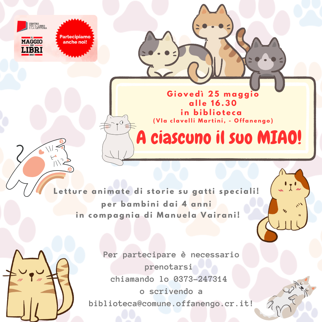 Per partecipare è necessario prenotarsi chiamando lo 0373-247314 o scrivendo a biblioteca@comune.offanengo.cr.it!