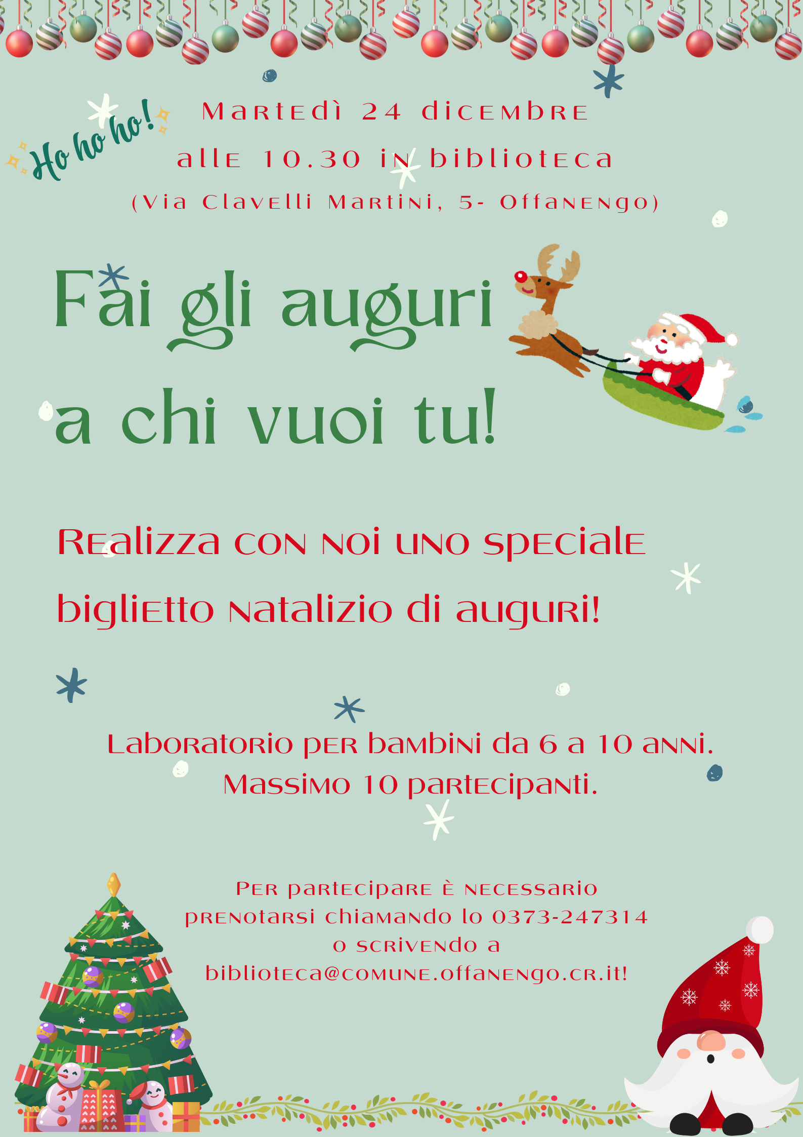 Per partecipare è necessario prenotarsi chiamando lo 0373-247314 o scrivendo a biblioteca@comune.offanengo.cr.it!