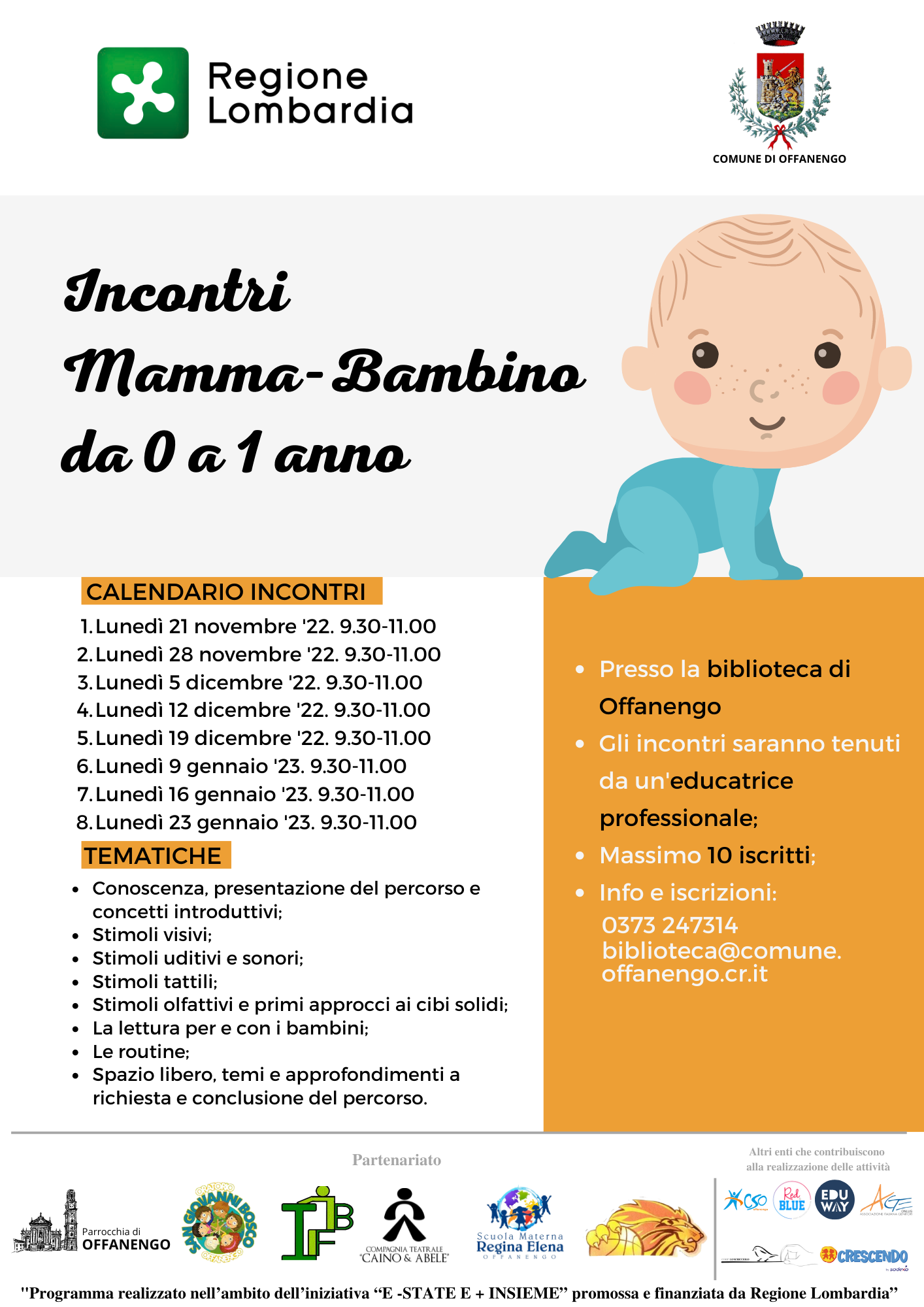 L'iniziativa rientra nel programma “Educare più insieme” realizzato nell'ambito dell'iniziativa “BandoE-state e + insieme” promossa e finanziata da Regione Lombardia.
