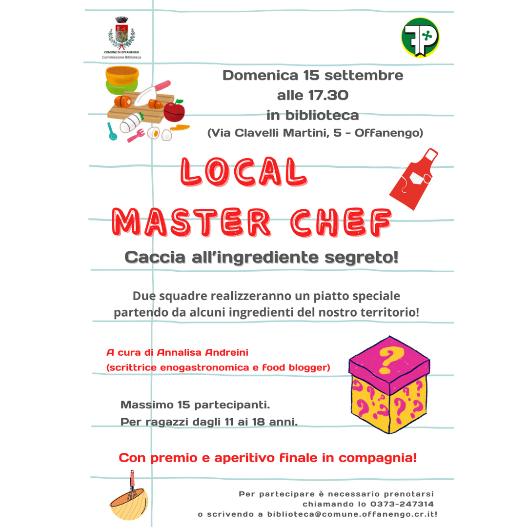 Per partecipare è necessario prenotarsi chiamando lo 0373-247314 o scrivendo a biblioteca@comune.offanengo.cr.it!