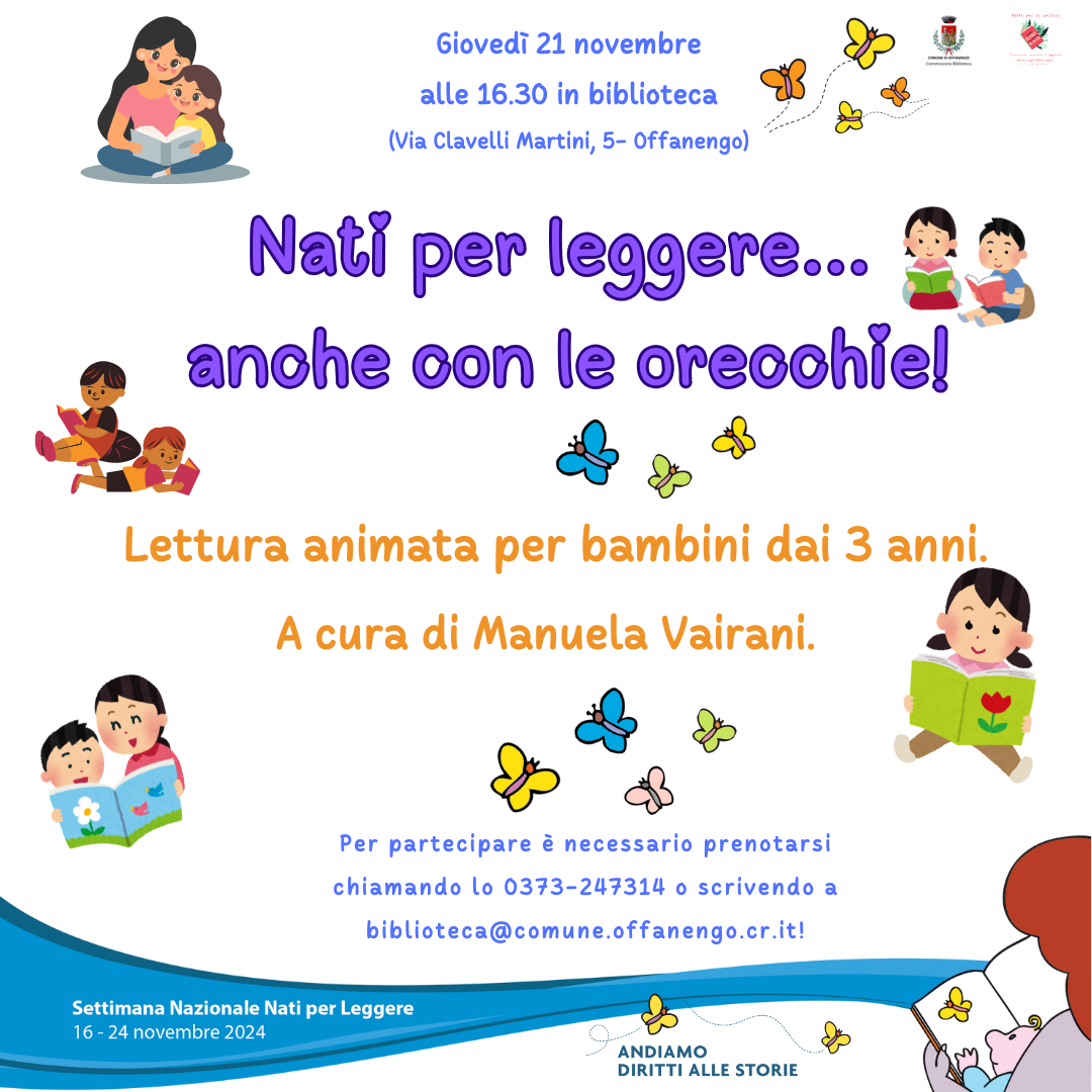 Per partecipare è necessario prenotarsi chiamando lo 0373-247314 o scrivendo a biblioteca@comune.offanengo.cr.it.