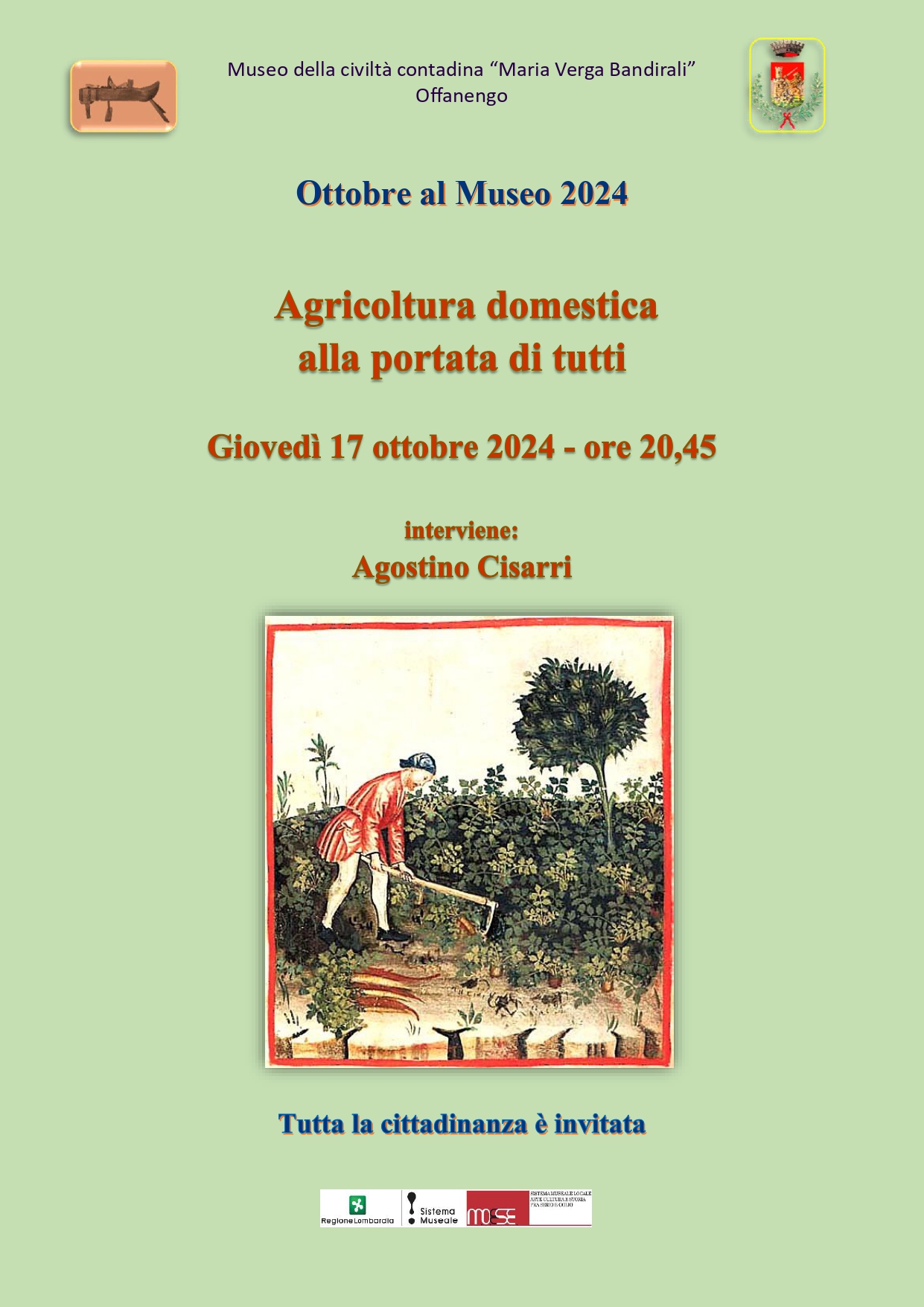 Ricordiamo l'appuntamento di giovedì 17 ottobre alle ore 20,45 presso il Museo della civiltà contadina "Maria Verga Bandirali"alla terza manifestazione nell'ambito di "OTTOBRE AL MUSEO" tema della serata AGRICOLTURA DOMESTICA ALLA PORTATA DI TUTTI interviene Agostino Cisarri