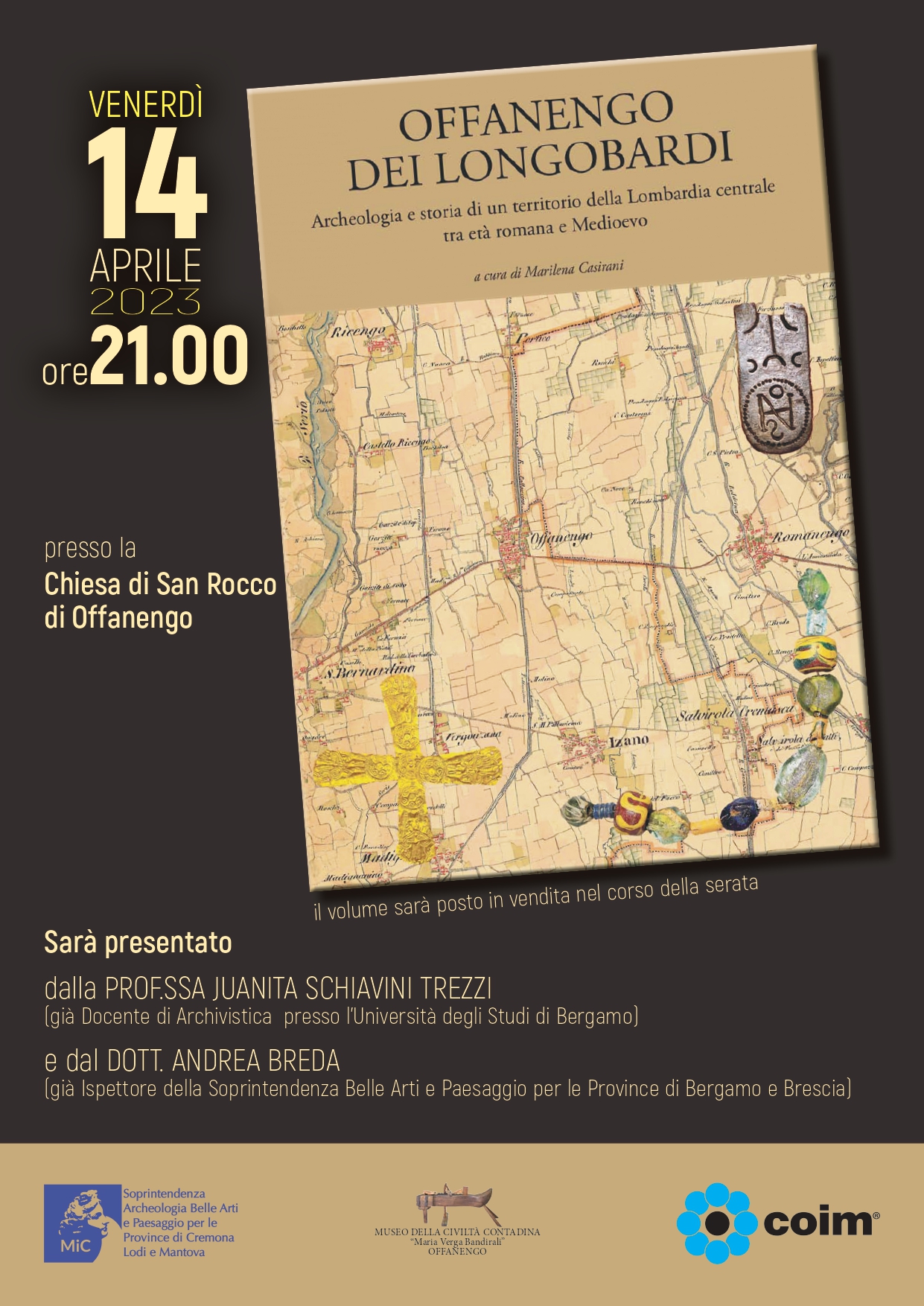 Il volume “Offanengo dei Longobardi. Archeologia e storia di un territorio della Lombardia centrale tra età romana e Medioevo” verrà presentato ufficialmente il 14 aprile alle 21.00 presso la chiesa rinascimentale di San Rocco in Offanengo.