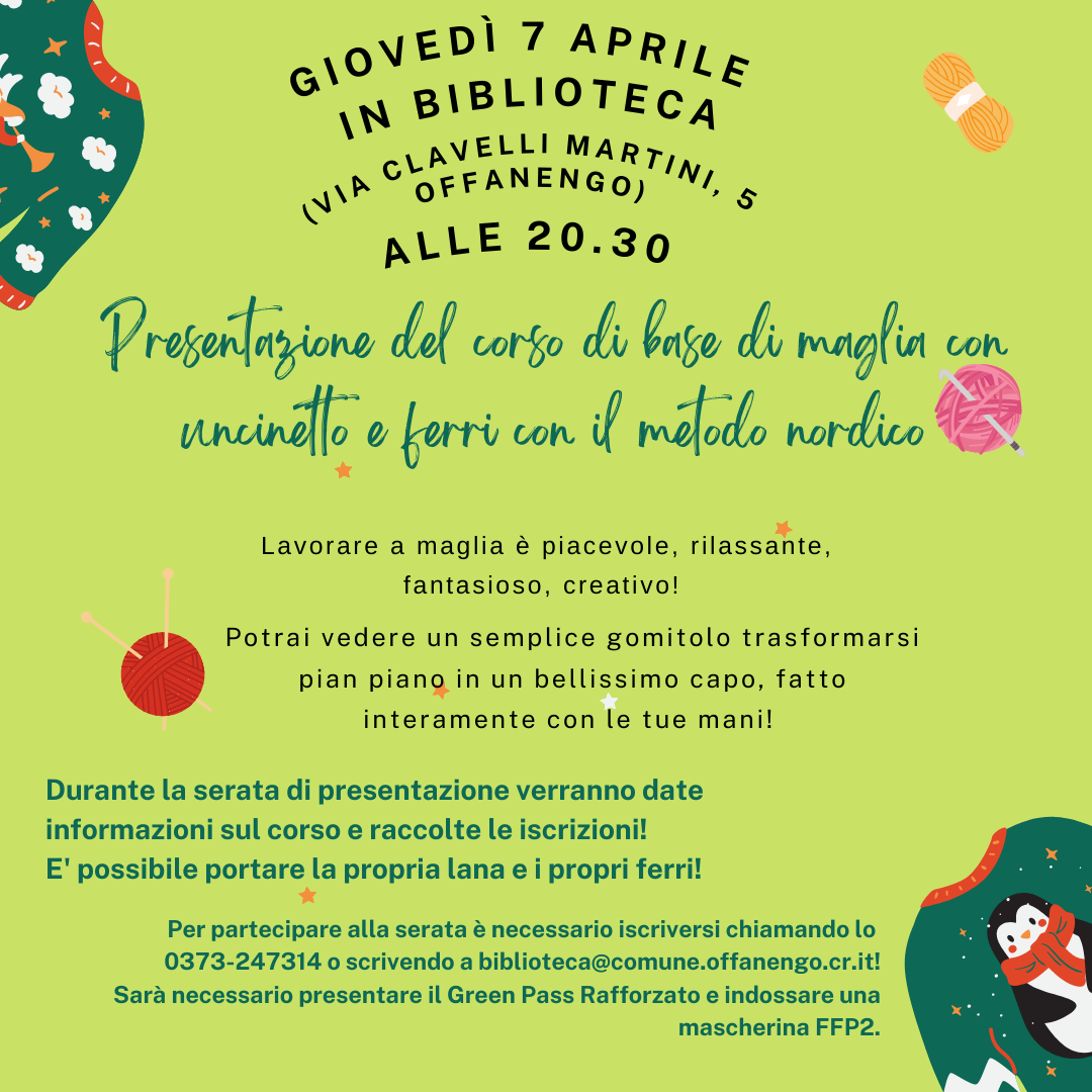 Per partecipare alla serata è necessario iscriversi chiamando lo 0373-247314 o scrivendo a biblioteca@comune.offanengo.cr.it!